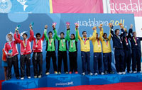 Valencia, Avitia y Román. Oro en tiro con arco. Foto: AP