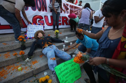 Protestan por la guerra de Calderón en el Ángel. Foto: Germán Canseco