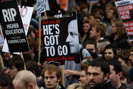 Estudiantes británicos protestan por aumento de cuotas. Foto: AP