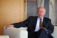 Enfundado en un traje gris, dorada la corbata que le cruzaba el pecho, se le percibía relajado, con el semblante de quien ha recibido una noticia por demás grata.
