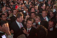 Peña Nieto acudió a esta capital a la presentación del Quinto Informe de actividades del senador Manuel Velasco Coello, durante un acto que reunió a miles de simpatizantes en el estadio de futbol Víctor Manuel Reyna.