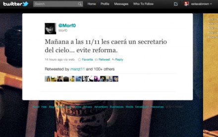 MÉXICO, D.F. (apro).- Ayer @Morf0 sólo era un usuario de Twitter al que seguían poco más de tres mil usuarios, pero después de haber pronosticado en su cuenta que este viernes caería un secretario “del cielo”, aumentó su popularidad al acumular más de 17 mil seguidores en unas cuantas horas.