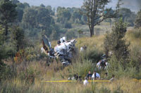 Puntualizó que el helicóptero se impactó a una altura de 9 mil 200 pies sobre el nivel del mar, sobre una extensión de 150 metros, donde la forma en que se dispersaron las piezas del aparato revelan la trayectoria del accidente.