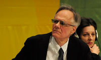 GUADALAJARA, Jal. (apro).- El escritor colombiano nacionalizado mexicano, Fernando Vallejo, quien el sábado 26 recibió el Premio de Literatura en Lenguas Romances que otorga la Feria Internacional del Libro (FIL), se presentó esta tarde en el salón Juan Rulfo de la Expo-Guadalajara para hablar de Dios, su causa por los animales y la homosexualidad.