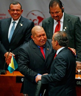 Chávez y Calderón en la cumbre de la Celac.