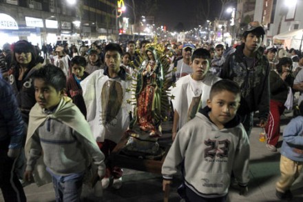 Peregrinos celebran a la virgen de Guadalupe. Foto: Benjamin Flores