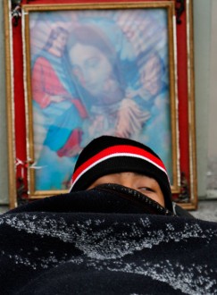Peregrinos celebran a la virgen de Guadalupe. Foto: Benjamin Flores