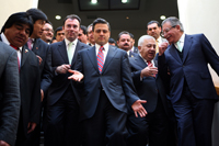 MÉXICO, D.F. (apro).- Con el exgobernador poblano Mario Marín a su costado izquierdo, el precandidato presidencial priista Enrique Peña Nieto minimizó la disminución de tres puntos en las preferencias electorales que hoy registró Consulta Mitofsky, y calificó dichas mediciones como “fotografías de un momento dado”.