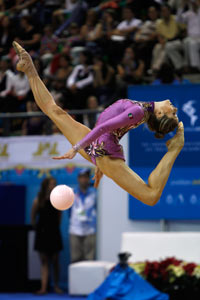 En total, 25 gimnastas participaron en los aparatos de aro y pelota, pruebas en las que la tapatía obtuvo calificaciones de 24.550 y 23.625, respectivamente, para un acumulado de 48.175 puntos.