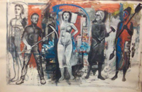 Desde el pasado jueves 12, el espacio fundado en 1949 por artistas como Arturo García Bustos y Rina Lazo expone 45 obras de dibujo y pintura, realizadas por Manrique en diferentes etapas de su carrera. Se incluyen dos murales móviles: Defensa de nuestras generaciones y nuestra identidad cultural crucificada, hecho con vinílica y triplay, y Consecuencias del industrialismo ajeno y la posibilidad.