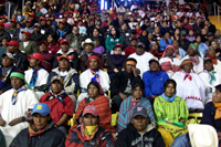 En el gimnasio se mostraba el músculo del partido ordenado por sectores corporativos: la CTM, el Frente Juvenil, las estructuras seccionales, la CNC, la CNOP y los indígenas serranos. Estos últimos, como pudo constatar Proceso, acarreados por la Coordinación Estatal de la Tarahumara (conocida como la coordinadora), el órgano de gobierno encargado de repartir despensas para paliar la hambruna que comienza a presentarse por las heladas y la sequía que acabaron con toda la cosecha (Proceso 1836).