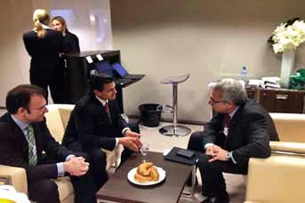 En el marco del Foro Económico Mundial, Peña Nieto sostuvo reuniones privadas con Luis Alberto Moreno, presidente del Banco Interamericano de Desarrollo (BID); Juan Somavia, de la Organización Internacional del Trabajo (OIT), así como con Ana Botín, del banco español Grupo Santander.