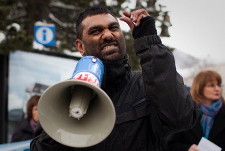 Altermundistas protestan en el Foro de Davos. Foto: AP