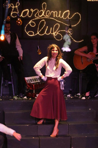 Desde la entrada, con una copa de vino en la mano, baila la gente que quiera bailar a invitación expresa de los actores. Música en vivo, personajes identificables y música de la época es lo que conforma la obra Gardenia Club de Eloy Hernández bajo la dirección de Lila Avilés, primer montaje de ambos.