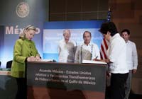 La firma correspondió a la secretaria de Estado estadunidense, Hillary Clinton, y a la canciller mexicana Patricia Espinoza, quienes reunidas en Los Cabos, Baja California, formalizaron el “Acuerdo para la exploración y explotación de los yacimientos transfronterizos”.