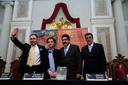 Aristegui, Durazo y Espino presentaron el libro de Scherer García ante más de 300 personas que abarrotaron el Salón de Actos del Palacio de Minería, y los tres desmenuzaron la obra, de la que los dos segundos participan con sus testimonios sobre Calderón.