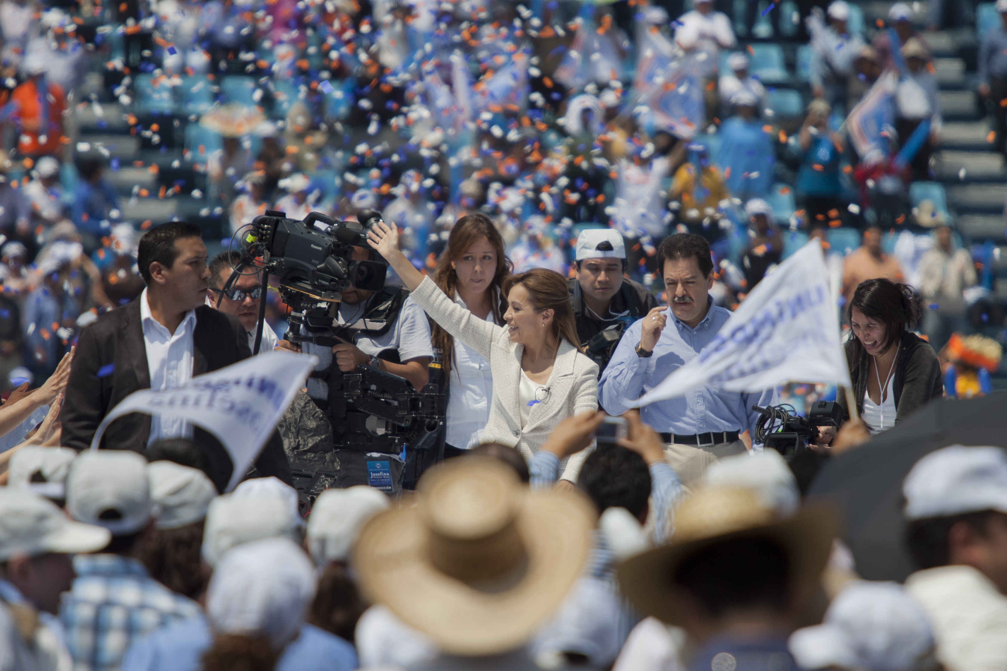 MÉXICO, D.F. (apro).- Luego de hasta cuatro horas a la intemperie, y con una temperatura superior a los 30 grados Centígrados, miles de hombres, mujeres, niños y ancianos, muchos de ellos forzados o a cambio de despensas, deslucieron la toma de protesta de Josefina Vázquez Mota como candidata del Partido Acción Nacional (PAN) a la Presidencia al abandonar, en masa, el Estadio Azul.