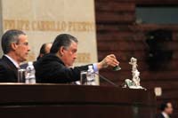 El primer llamado a quórum reunió a 244 diputados y el segundo a 212, por lo que el presidente de la Mesa Directiva, Guadalupe Acosta Naranjo, tuvo que suspender la sesión. Se espera que el próximo martes 20 la ley se apruebe en lo particular.
