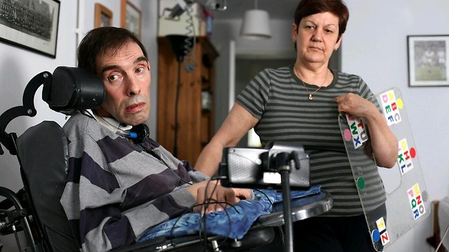 Desde entonces ya no puede caminar, hablar, hacer deportes o comer por sí mismo; está reducido a una silla de ruedas y sólo se comunica a través de una tableta electrónica o de una computadora especial.