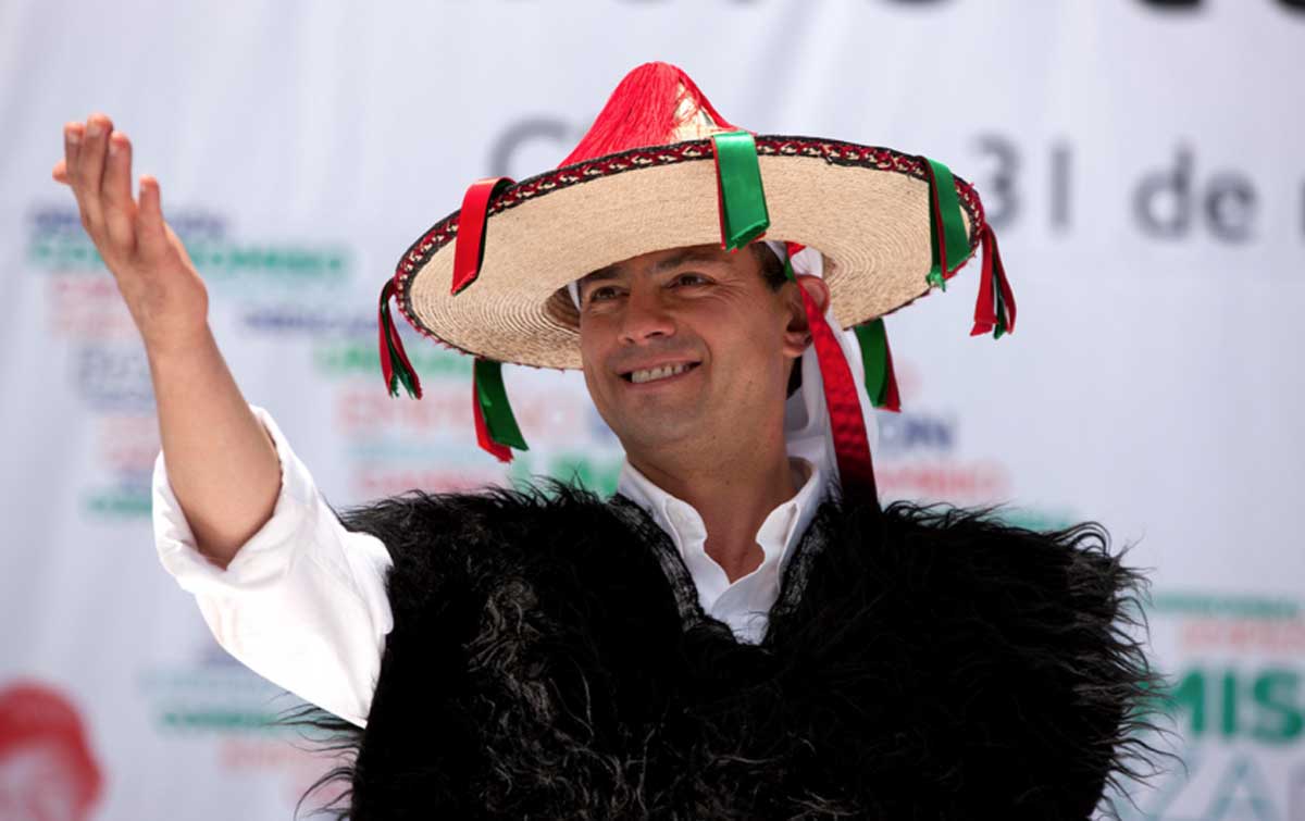 Ante miles de indígenas tzotziles de Chamula y de varios municipios de la región de Los Altos de Chiapas, Peña Nieto llegó acompañado de su esposa, la actriz Angélica Rivera, y ambos fueron vestidos con la indumentaria tradicional indígena.