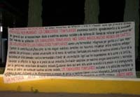 En otra parte de las mantas, consignan que “Los Caballeros Templarios no somos narcos, mucho menos un cártel de delincuentes. Somos una hermandad integrada por gente civil que respetamos la Constitución, pero como se nos niegan nuestros derechos nos hacemos respetar”.