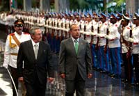 Con todas las pompas diplomáticas que se prodigan a un jefe de Estado, Calderón Hinojosa arribó a La Habana, donde fue recibido por el presidente Raúl Castro en el Palacio de la Revolución.
