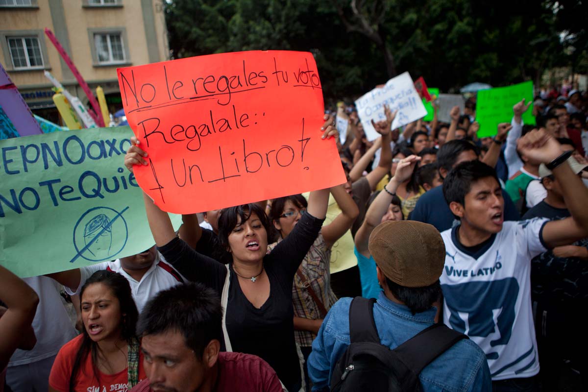 Desde el mediodía no le pintaban bien las cosas al candidato del PRI. En Guelatao de Juárez, al encontrar una plaza cívica semivacía, Peñas Nieto reclamó a su coordinador de campaña en Oaxaca, Heliodoro Díaz Escárraga: “A ver, ¿dónde está la gente?”.
