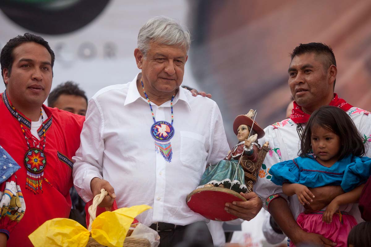 El tabasqueño, quien antes de comenzar el mitin recibió una imagen del Santo Niño de Atocha y un “ojo de Dios” de parte de los huicholes que viven por temporadas en este lugar para después partir a San Luis Potosí rumbo a sus ceremonias sagradas, preguntó a sus simpatizantes si estaban dispuestos a seguir padeciendo las acciones del crimen organizado, la falta de oportunidades y la migración.