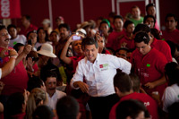“Ahí viene nuestro candidato, saludando a todos los guanajuatenses… viene acompañado de Juan Ignacio Torreslanda”, decía la presentadora mientras Peña Nieto recorría toda la escalinata de la explanada de la Alhóndiga para llegar al templete central.