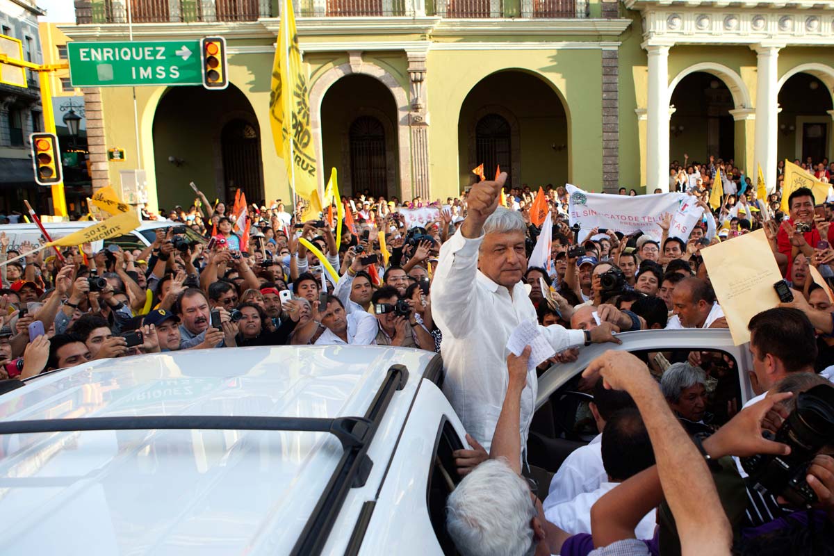 Su discurso entusiasmó a los asistentes, quienes no dejaron de gritar “¡Obrador, Obrador, presidente, presidente!”, cuando acusó al gobierno del priista Fidel Herrera Beltrán de haber “atontado” a los veracruzanos con su discurso de la “fidelidad” y haber pintado a todo el estado de rojo.