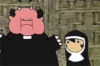 En tono irónico, el cura pregunta dónde dice eso, a lo que la religiosa responde que en los documentos del Concilio Vaticano II.