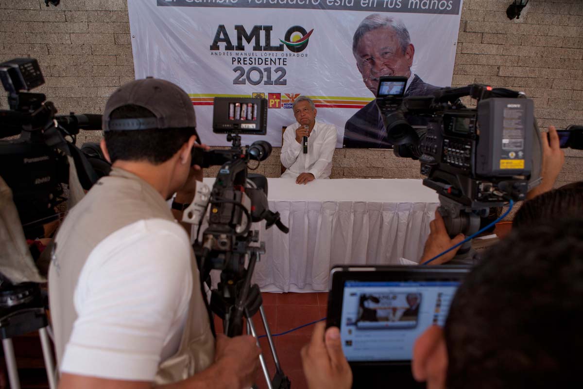 El candidato presidencial llamó a votar por él porque –argumentó– es un ser honesto; algunos perredistas parados en el templete movieron la cabeza en señal de desacuerdo.