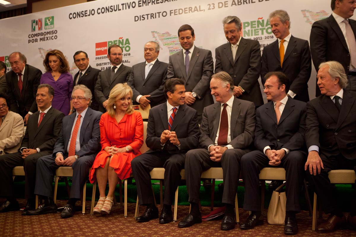 MÉXICO, D.F. (apro).- Un grupo de 24 empresarios y gerentes corporativos con intereses en la industria petroquímica, aeroportuaria, manufacturera, ganadera, acerera, textil, tecnología de la información, puertos, vivienda y calzado se integró al Consejo Consultivo Empresarial para promover la candidatura del aspirante presidencial priista Enrique Peña Nieto.