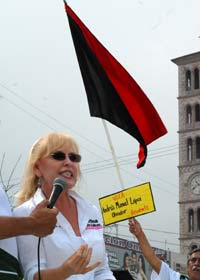 Su menuda figura, con rubia cabellera y ojos verdes, sobresalía entre los trabajadores que marcharon escasas diez calles.