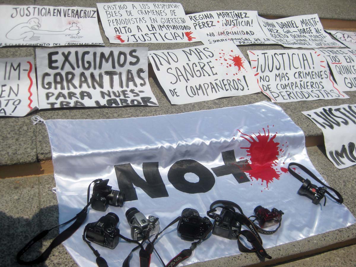 Durante el trayecto, los reporteros se detuvieron frente a la sede del Congreso local y la Procuraduría General de la República (PGR), para exigir que se legislen medidas de protección para el gremio periodístico y que se esclarezcan los crímenes contra periodistas que se han registrado en el país.