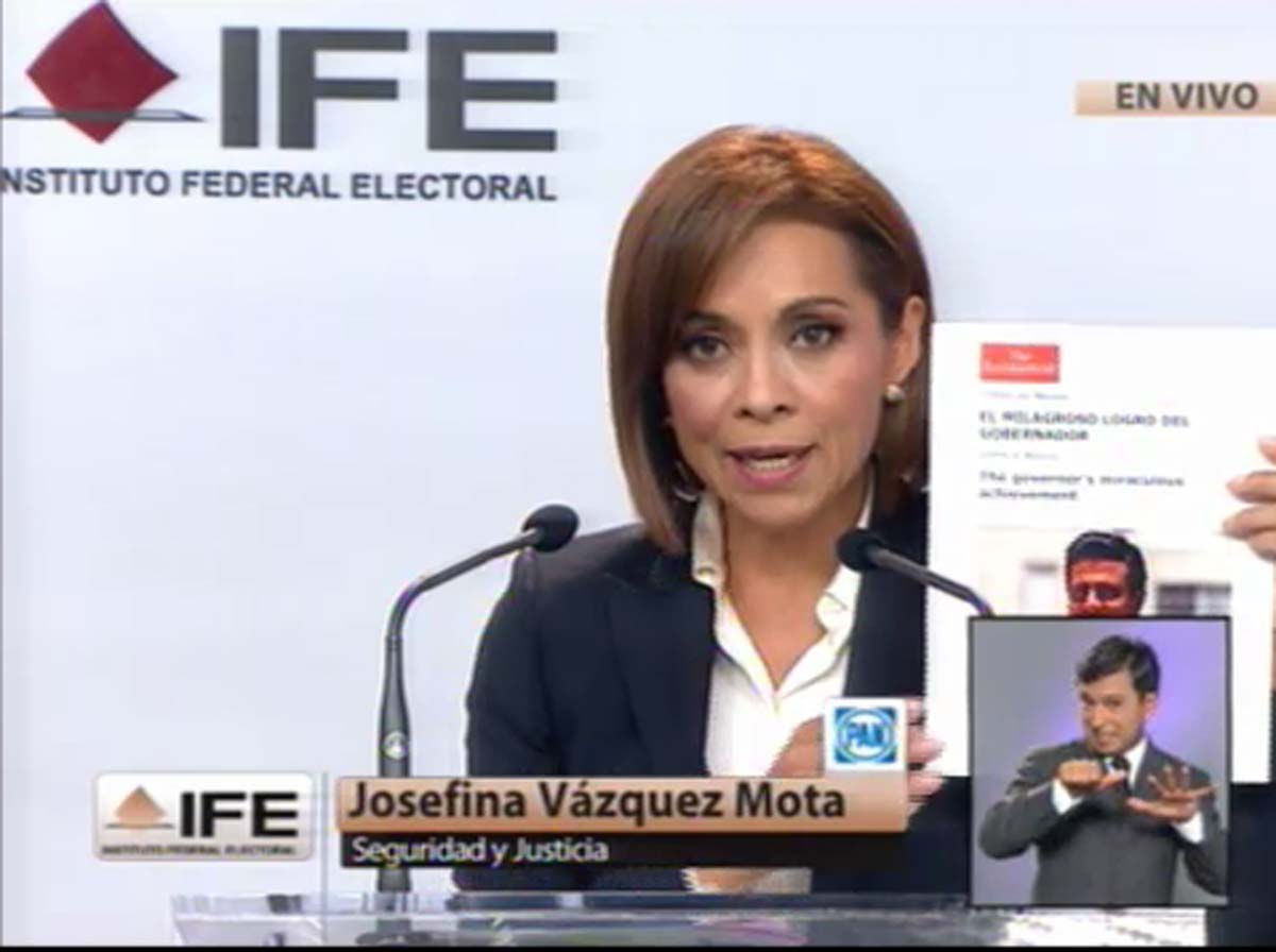 MÉXICO, D.F., (apro).- La candidata del PAN a la presidencia de la República, Josefina Vázquez Mota, criticó a Enrique Peña Nieto por el índice de feminicidios en el Estado de México y por la falta de claridad en la muerte de la niña de cuatro años Paulette Farah.