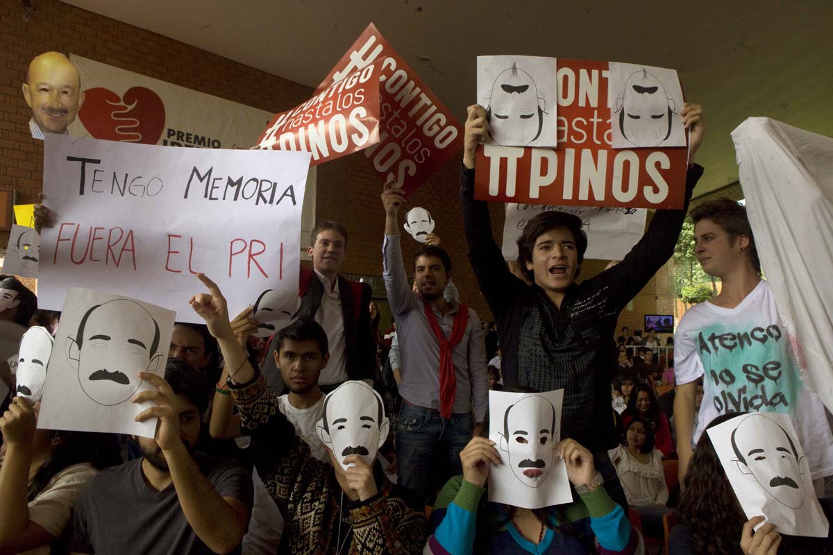 Los estudiantes de la Ibero estallaron cuando Peña Nieto justificó el operativo de represión contra los pobladores de Atenco en 2006. Sin embargo, desde antes de su arribo los jóvenes protestaron por la presencia del candidato con mantas y caretas de Carlos Salinas de Gortari.
