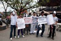 Perredistas y simpatizantes del Movimiento Progresista se presentaron en el primer cuadro de la ciudad, literalmente tomado por la clase política del PRI, que aguardaba el arribo de Peña Nieto.