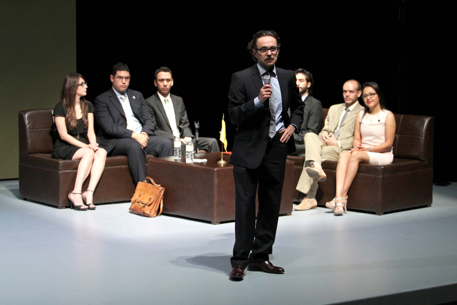 La gira de un día de Quadri de la Torre por Nuevo León inició a las 9:46, cuarenta y seis minutos tarde, en el Teatro de la Universidad de Monterrey, donde presentó sus planes para el país en caso de adjudicarse el voto mayoritario el 1 de julio.