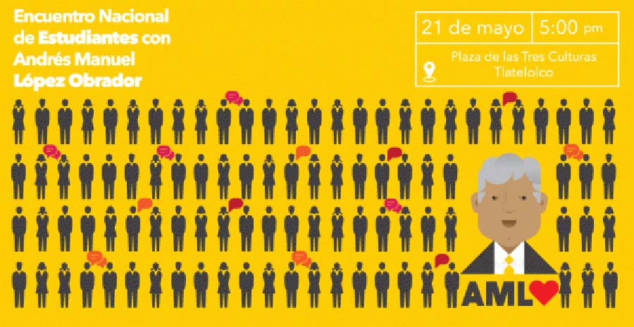 MÉXICO, D.F. (apro).- El candidato presidencial de la coalición Movimiento Progresista, Andrés Manuel López Obrador, anunció una manifestación con estudiantes en la Plaza de las Tres Culturas, el próximo lunes 21, debido a que por falta de tiempo no podrá visitar universidades públicas.