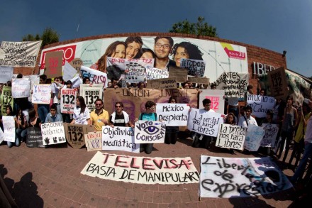 Alumnos de la Universidad Nacional Autónoma de México (UNAM), así como de las más exclusivas instituciones privadas, como la Universidad Iberoamericana, el Tecnológico de Monterrey, el Instituto Tecnológico Autónomo de México (ITAM) , así como alumnos de la Universidad Anáhuac, se manifestaron contra el manejo informativo del monopolio televisivo a favor del candidato del PRI, Enrique Peña Nieto.
