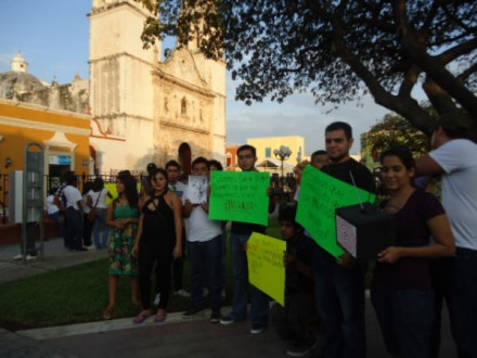 En Campeche, una treintena de jóvenes de diferentes universidades se reunieron esta noche en el Parque Principal donde instalaron mantas con leyendas en contra del PRI.