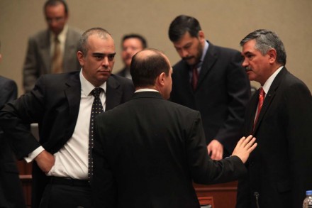 Figueroa, Baños y Valdés durante una sesión en el IFE. Foto: Eduardo Miranda |