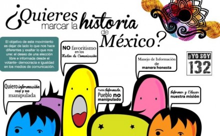“#YoSoy132 es un foro de expresión libre y abierto cuyo objeto es concentrar todas las voces y rostros que exigimos un México mejor!” dice el texto.