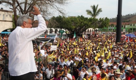 TEJUPILCO, Edomex. (apro).- Ante unas 5 mil personas de la región sur mexiquense que colinda con Michoacán y Guerrero, el candidato de la izquierda unida, Andrés Manuel López Obrador, convocó a sus simpatizantes a dar “el último jalón” en lo que resta de la campaña y tener cuidado con los “delincuentes electorales” que, advirtió, van a querer robarle la victoria, como pasó en el 2006.