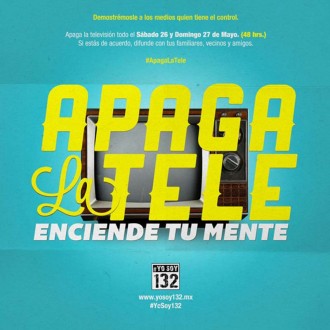 “Demostrémosle a los medios quién tiene el control. Apaga la televisión todo el sábado 26 y domingo 27 de mayo (48 horas). Si estás de acuerdo, difunde con tus familiares y amigos. #Apaga la tele, enciende tu mente”.