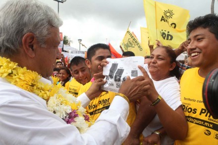 A 37 días de la elección, el tabasqueño recibió en esta ciudad nuevas muestras de apoyo por parte de jóvenes, quienes en los últimos días han participado en diversas marchas para exigir apertura informativa y mayor democratización en los medios de comunicación.