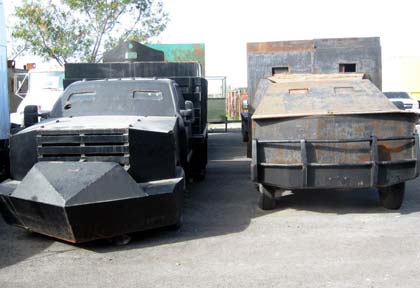 Un oficial de la Octava Zona Militar explica que a esos vehículos se les modificaba la suspensión para que soportara hasta 30 toneladas de peso. Posteriormente, indica, se recubría el motor, la cabina y la parte trasera con placas de acero de al menos una pulgada de grosor. Las defensas originales eran sustituidas por trozos de rieles de ferrocarril.