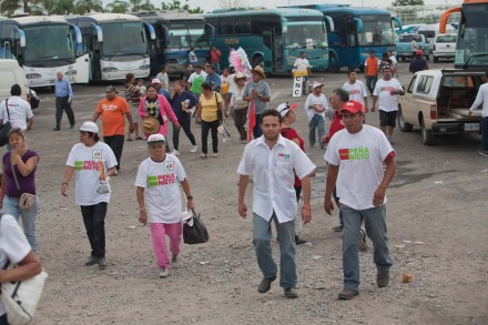 En el camino a San José de Guanajuato –cerca del aeropuerto de Celaya-, las laterales y los terrenos agrícolas o baldíos secos fueron insuficientes para los cientos de autobuses y automóviles en que llegaron los priistas y los contingentes.