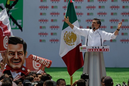 Después de conciertos de El Recodo y otras bandas que amenizaron a miles de simpatizantes trasladados desde el Estado de México, Coahuila, Hidalgo, Tabasco y otras entidades gobernadas por el PRI, Enrique Peña Nieto se presentó acompañado por la candidata a jefa de Gobierno, Beatriz Paredes, y una decena de gobernadores priistas que apadrinaron al exmandatario mexiquense.